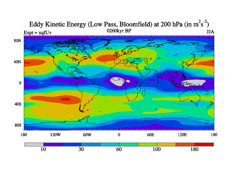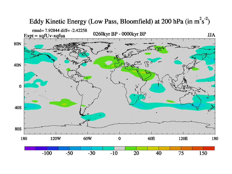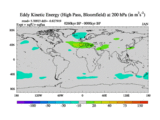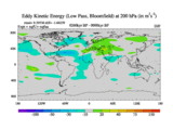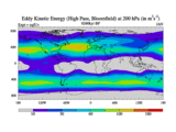 Low Pass Eddy Kinetic Energy at 200 hPa