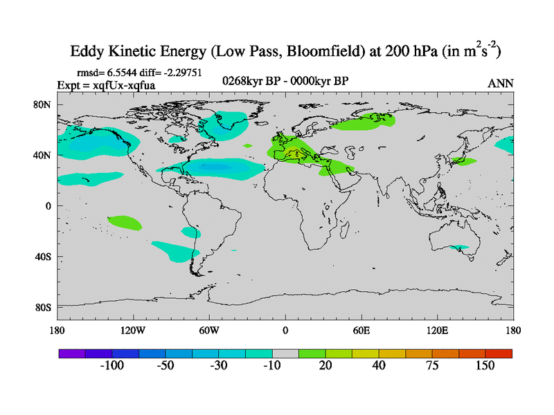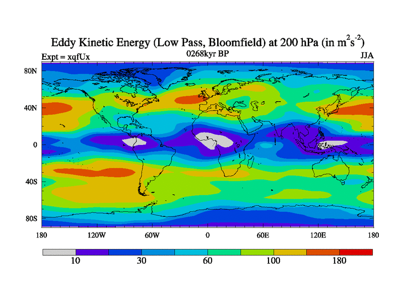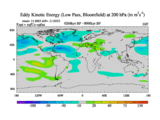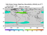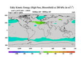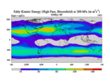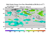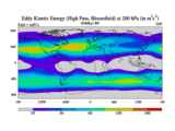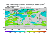 Low Pass Eddy Kinetic Energy at 200 hPa