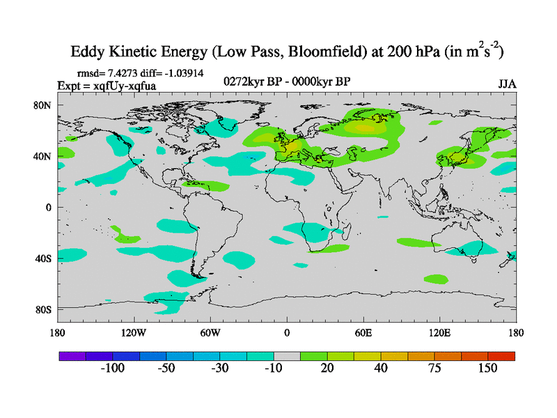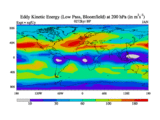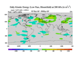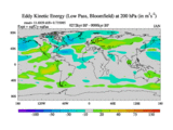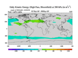 Low Pass Eddy Kinetic Energy at 200 hPa