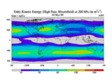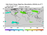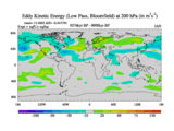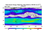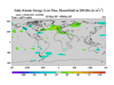 Low Pass Eddy Kinetic Energy at 200 hPa