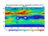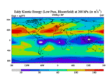 Low Pass Eddy Kinetic Energy at 200 hPa