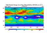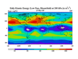 Low Pass Eddy Kinetic Energy at 200 hPa