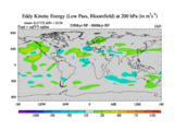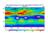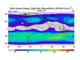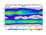 Low Pass Eddy Kinetic Energy at 200 hPa
