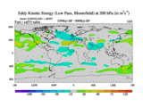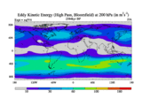 Low Pass Eddy Kinetic Energy at 200 hPa