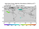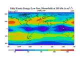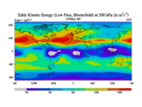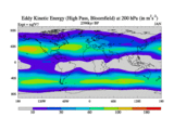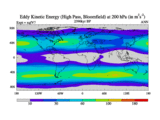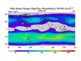 Low Pass Eddy Kinetic Energy at 200 hPa