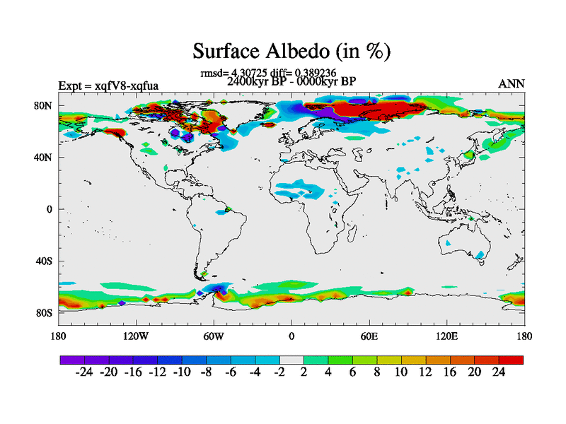 This is the 2400kyr simulation for a new set of BBC long runs. This is using the new convection/soil schemes, and has bug fixes for checkerboard patterns, and GW drag. Also includes eccentricity bugfix. This run includes orbit and icesheet but no GHGs variations.