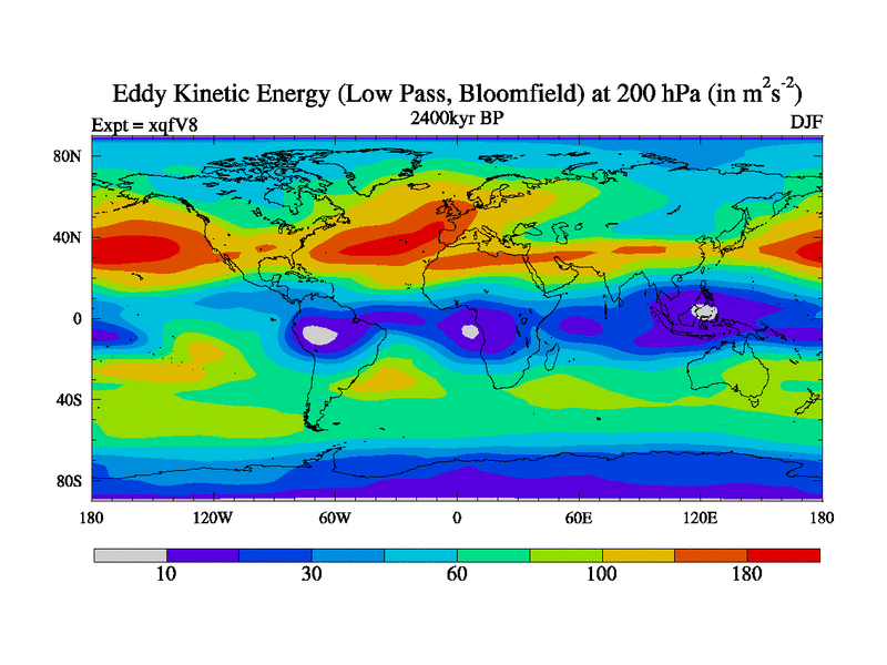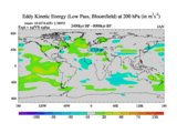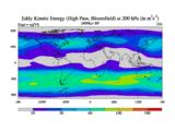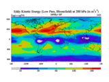 Low Pass Eddy Kinetic Energy at 200 hPa