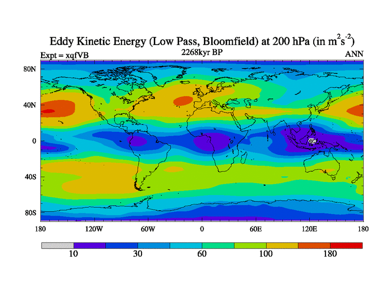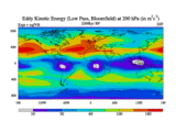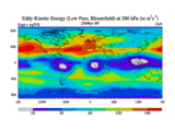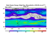 Low Pass Eddy Kinetic Energy at 200 hPa