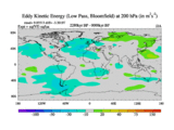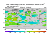 Low Pass Eddy Kinetic Energy at 200 hPa