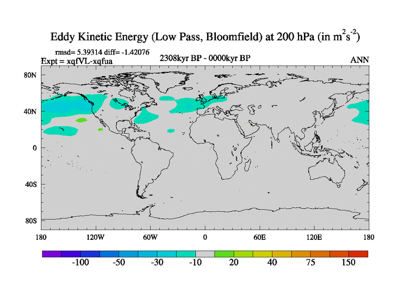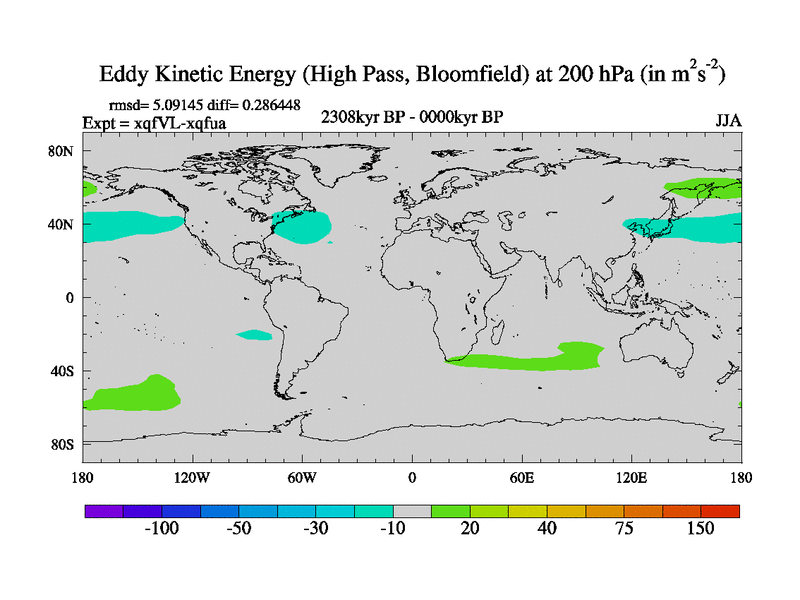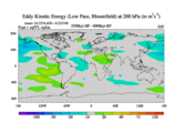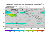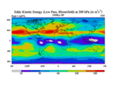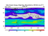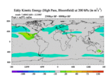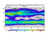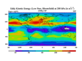 Low Pass Eddy Kinetic Energy at 200 hPa