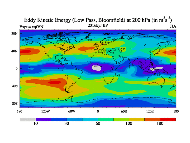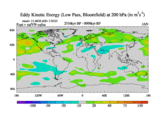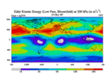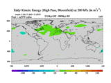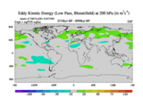 Low Pass Eddy Kinetic Energy at 200 hPa