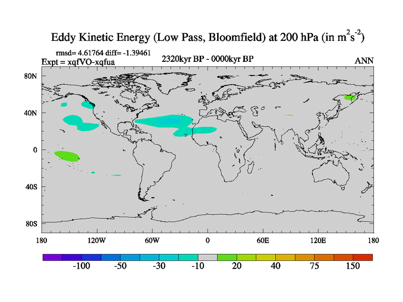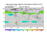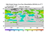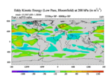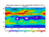 Low Pass Eddy Kinetic Energy at 200 hPa