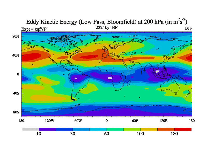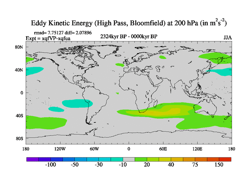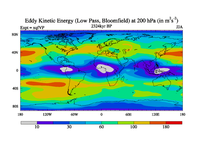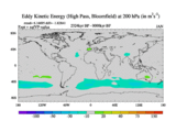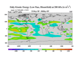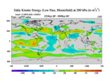 Low Pass Eddy Kinetic Energy at 200 hPa