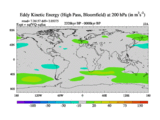 High Pass Eddy Kinetic Energy at 200 hPa