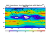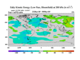 Low Pass Eddy Kinetic Energy at 200 hPa