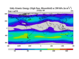 Low Pass Eddy Kinetic Energy at 200 hPa