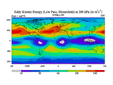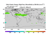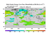 Low Pass Eddy Kinetic Energy at 200 hPa
