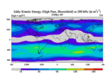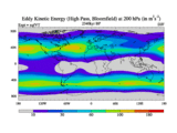 High Pass Eddy Kinetic Energy at 200 hPa