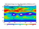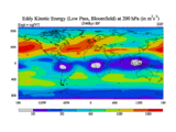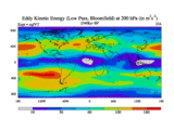 Low Pass Eddy Kinetic Energy at 200 hPa