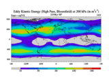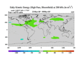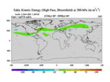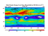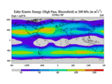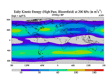 Low Pass Eddy Kinetic Energy at 200 hPa
