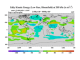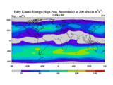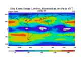 Low Pass Eddy Kinetic Energy at 200 hPa