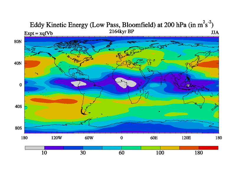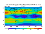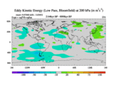 Low Pass Eddy Kinetic Energy at 200 hPa