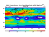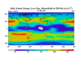Low Pass Eddy Kinetic Energy at 200 hPa