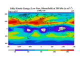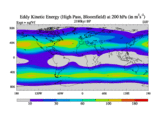 Low Pass Eddy Kinetic Energy at 200 hPa