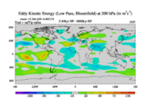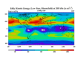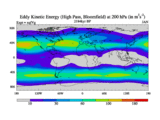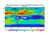 Low Pass Eddy Kinetic Energy at 200 hPa