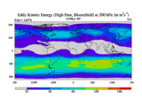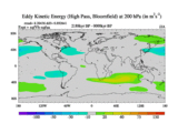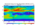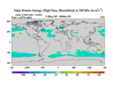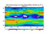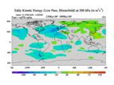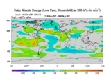 Low Pass Eddy Kinetic Energy at 200 hPa