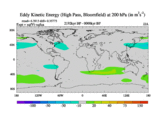High Pass Eddy Kinetic Energy at 200 hPa