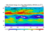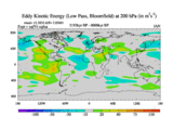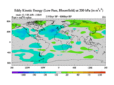 Low Pass Eddy Kinetic Energy at 200 hPa