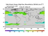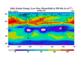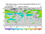 Low Pass Eddy Kinetic Energy at 200 hPa
