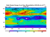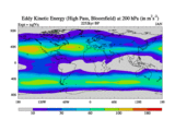 Low Pass Eddy Kinetic Energy at 200 hPa