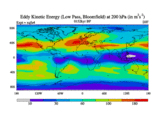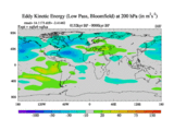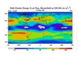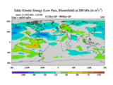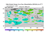 Low Pass Eddy Kinetic Energy at 200 hPa