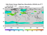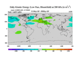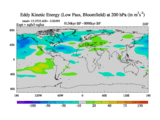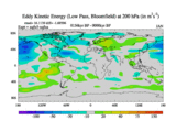 Low Pass Eddy Kinetic Energy at 200 hPa