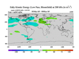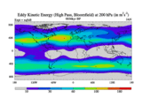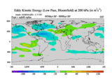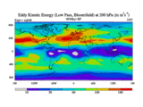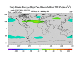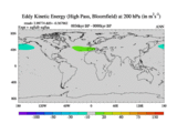 Low Pass Eddy Kinetic Energy at 200 hPa