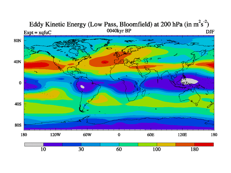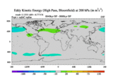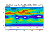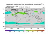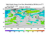 Low Pass Eddy Kinetic Energy at 200 hPa