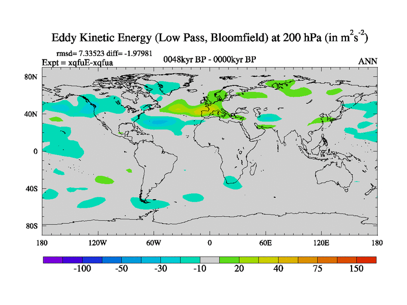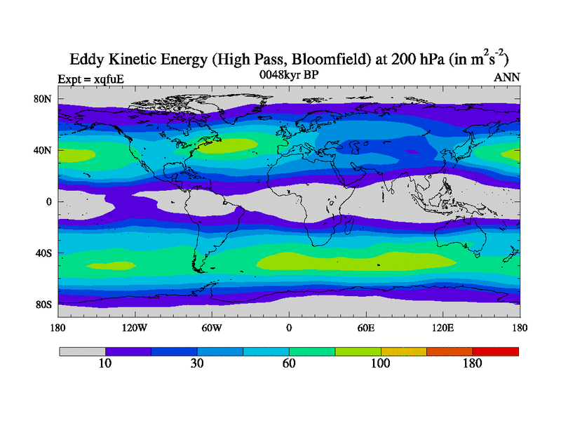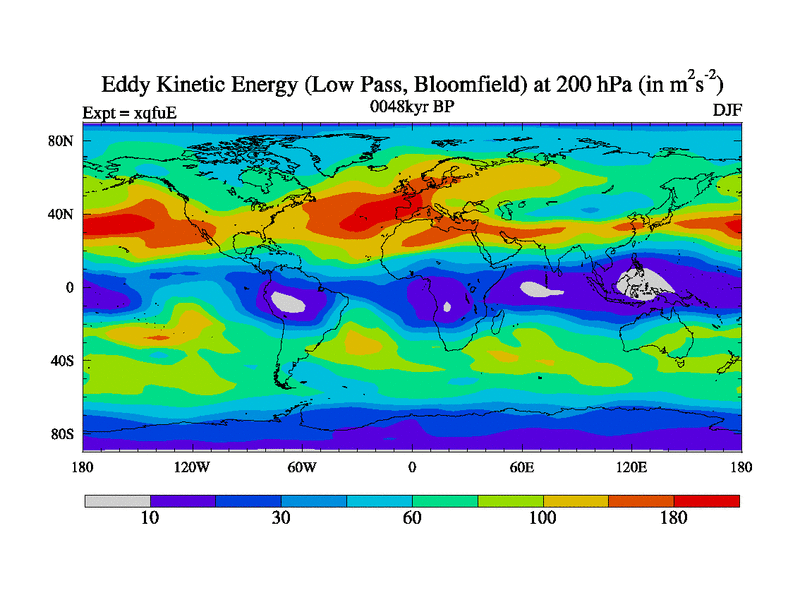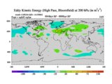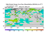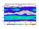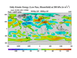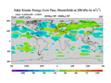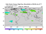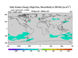 Low Pass Eddy Kinetic Energy at 200 hPa