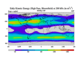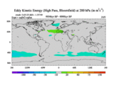 High Pass Eddy Kinetic Energy at 200 hPa