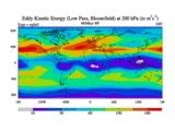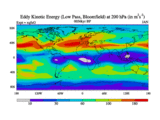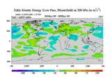 Low Pass Eddy Kinetic Energy at 200 hPa