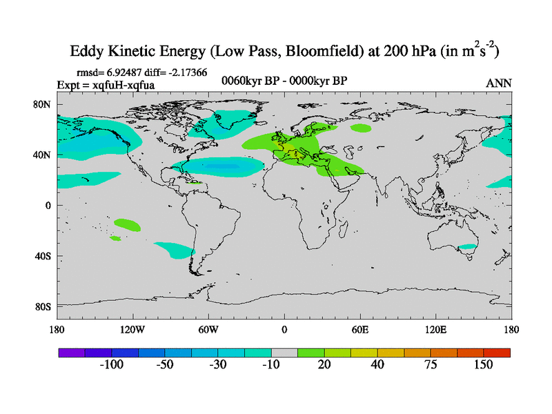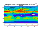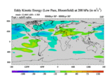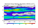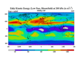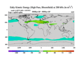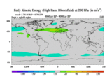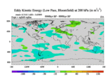 Low Pass Eddy Kinetic Energy at 200 hPa
