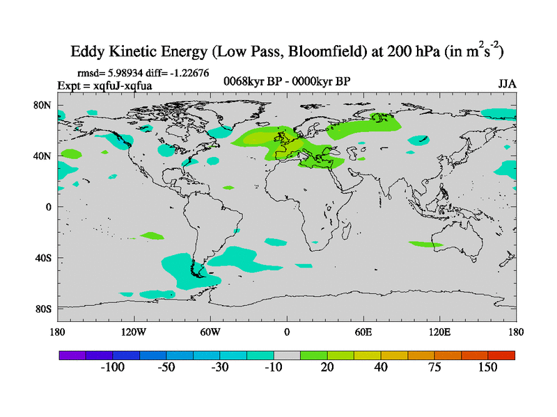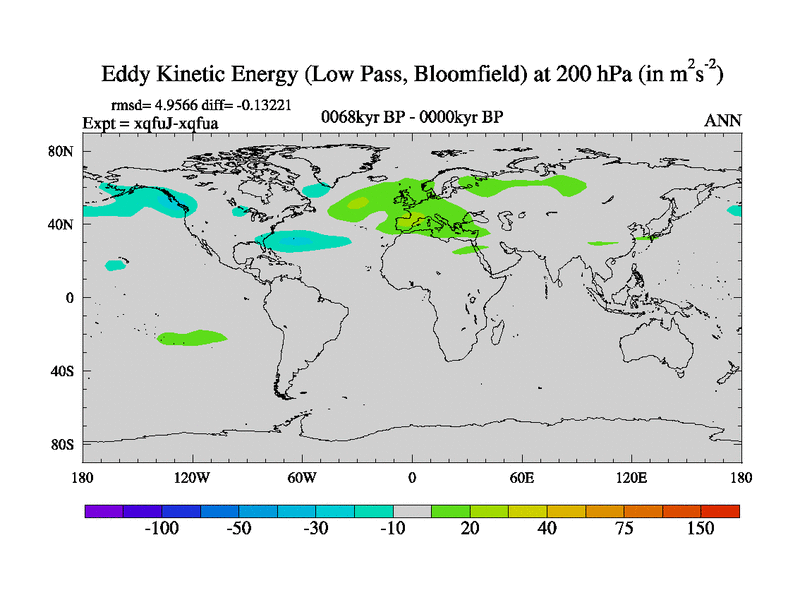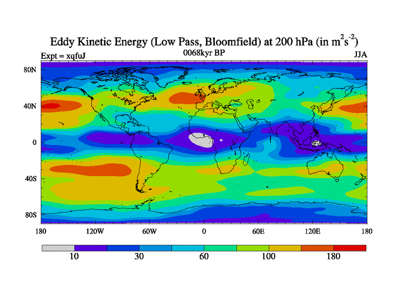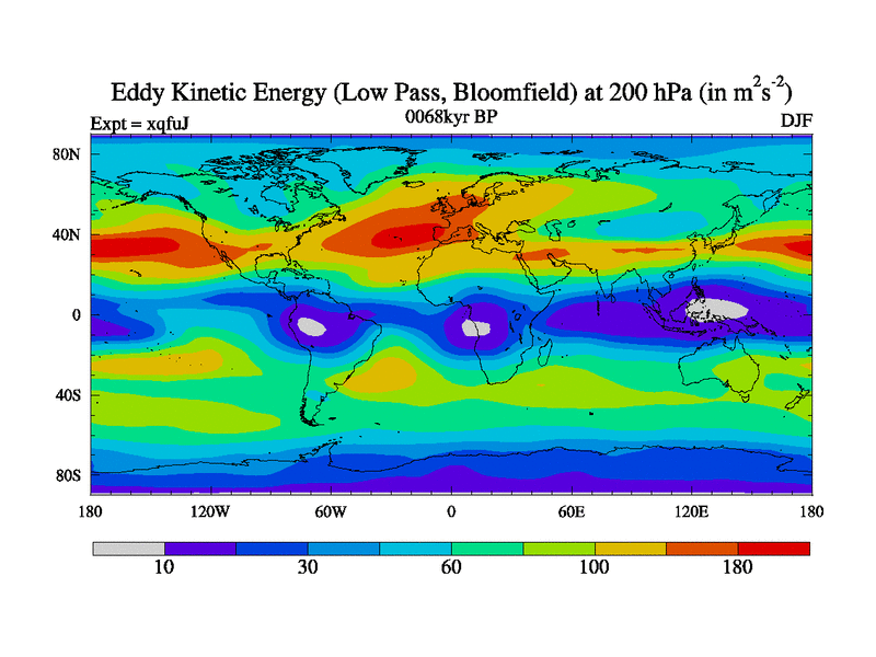 Low Pass Eddy Kinetic Energy at 200 hPa