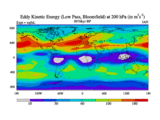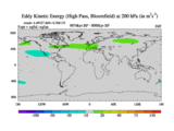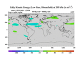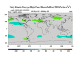 Low Pass Eddy Kinetic Energy at 200 hPa