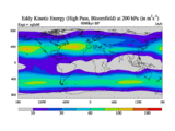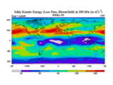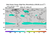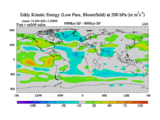 Low Pass Eddy Kinetic Energy at 200 hPa