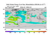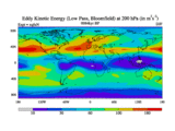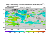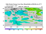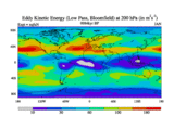 Low Pass Eddy Kinetic Energy at 200 hPa