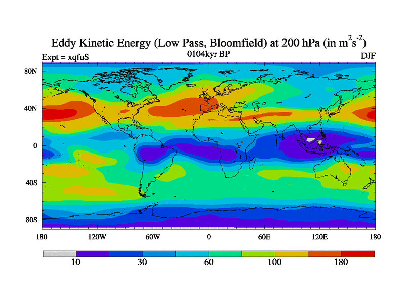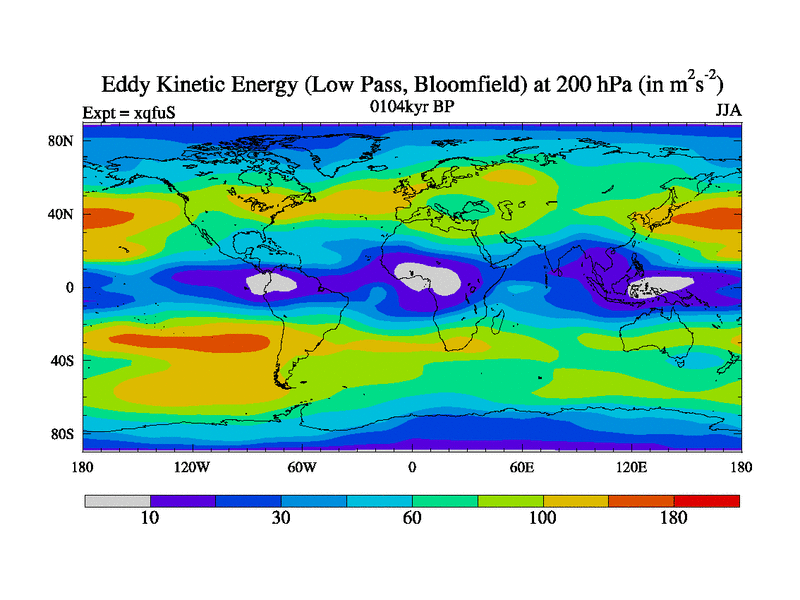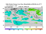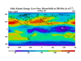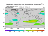 Low Pass Eddy Kinetic Energy at 200 hPa