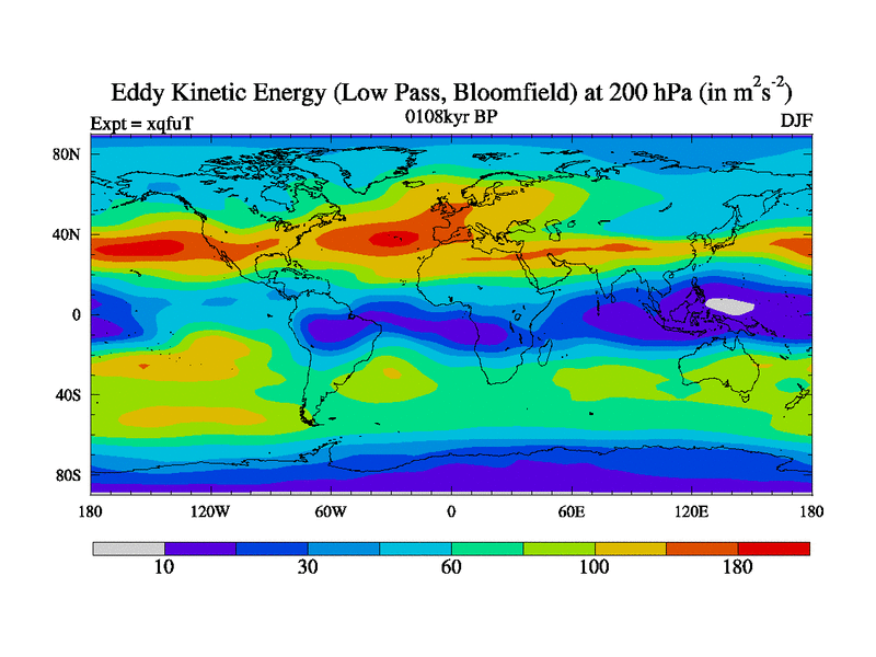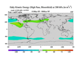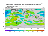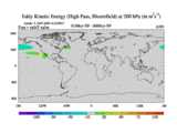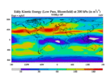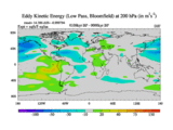 Low Pass Eddy Kinetic Energy at 200 hPa