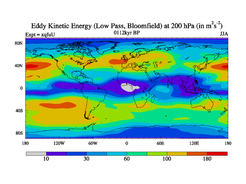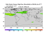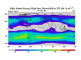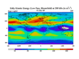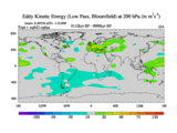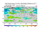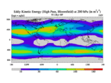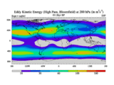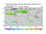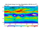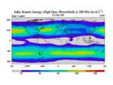 Low Pass Eddy Kinetic Energy at 200 hPa
