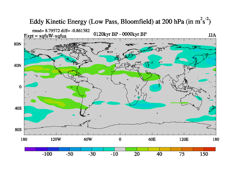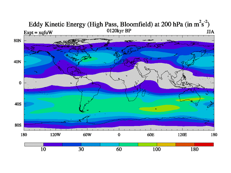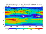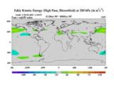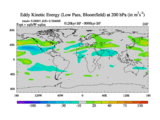 Low Pass Eddy Kinetic Energy at 200 hPa